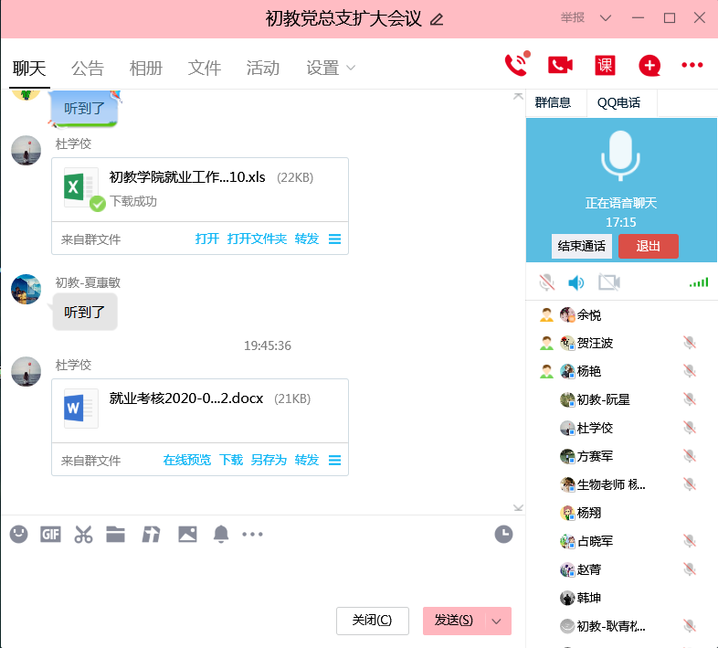 512日晚7点半,初教学院领导班子、各教研室负责人、党政办、教学办、学工办负责人、招就干事等老师参加了“初教党总支扩大会议暨就业工作会议”。会上杨艳书记传达了学校有关今年毕业生就业工作的政策精神,学院领导、各部门高度重视,一致达成共识:齐抓共管,合力攻坚。全体教职工认真落实我院2020届毕业生就业工作方案,形成“院领导统筹全局、党总支书记牵头负责、各部门通力合作、各班级积极落实”的全员参与态势,群策群力帮助毕业生顺利毕业、尽早就业。