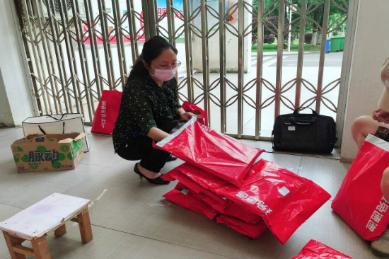 本站讯【通讯员吴爽】为解决学生在家学习中对留置在寝室的教材以及生活用品的迫切需求,5月16日初等教育学院党总支书记杨艳带领着全体辅导员及班主任代表在学生宿舍开展学生物品清点邮寄工作。老师们提前通过QQ群联系各班班长,收集各班需要邮寄物品的清单并对家庭地址逐一核对。面对收集信息时填写杂乱、不清晰的各种情况,老师们并未抱怨,而是耐心地联系学生确保填写正确。