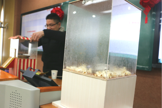 其实这不是初教学院第一次用这样特别的方式开启新的一年。2018年的春季新学期,语文教研室在会场布置了五彩的灯笼,欢乐猜灯谜,同时还为老师们准备了糖果、汤圆等,现场一片欢乐祥和。2019年的春季新学期,科学教研室带领全体老师们现场制作爆米花,做灯笼。