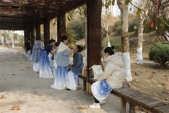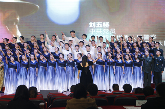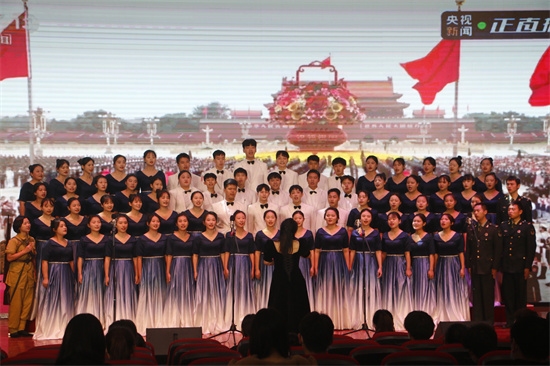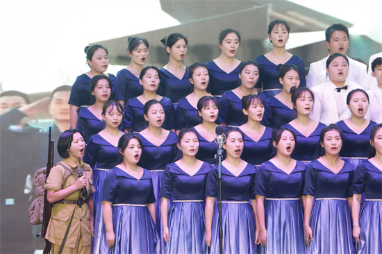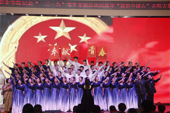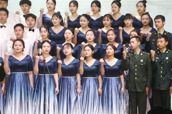 同学们歌声激昂嘹亮,用青春之热情回应先辈之热血,用青春之蓬勃继承先辈之遗志。继往开来,在和平稳定、持续发展的今天,勇担时代使命,把真诚的爱献给祖国。