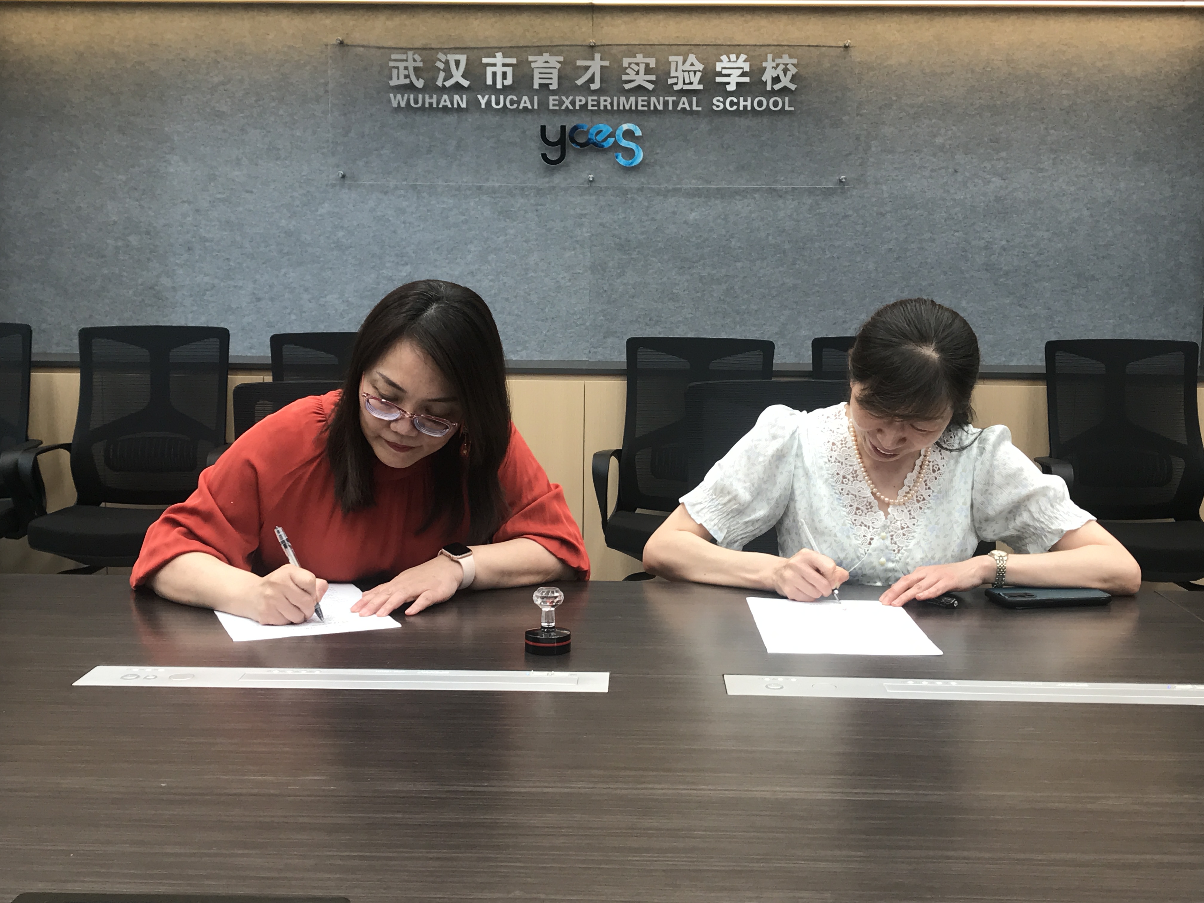 武汉市育才实验学校的领导老师对我院领导老师的到来表示热烈欢迎,陪同参观了学校,并进行了充分的交流座谈。杨春湖实验学校的关蓓校长从学校概况、发展规划、办学理念等方面作了全面介绍,我院院长贺汪波也从学院发展情况、专业建设情况、学生实习就业等方面作了详细介绍。随后,双方签订共建协议书,并进行实习基地的挂牌。