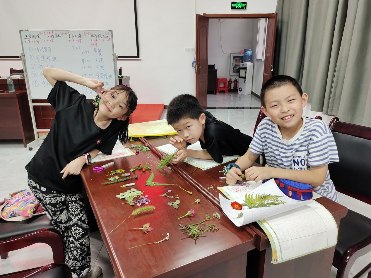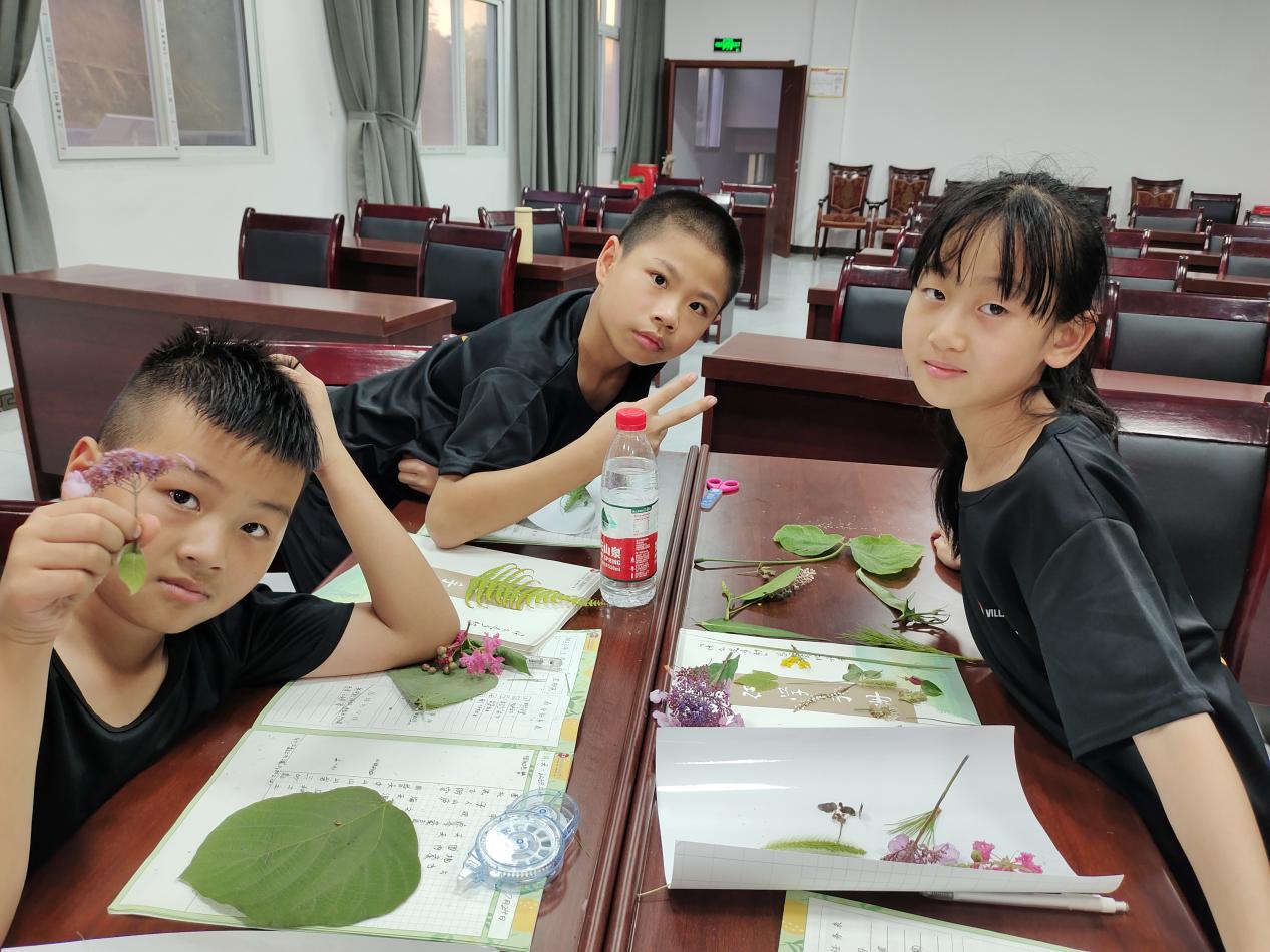 晚餐后,小朋友们开始制作标本,各式各样的植物在大家手中有了固定的形状和色彩,植物标本也将不受限于区域、季节,被大家珍藏。