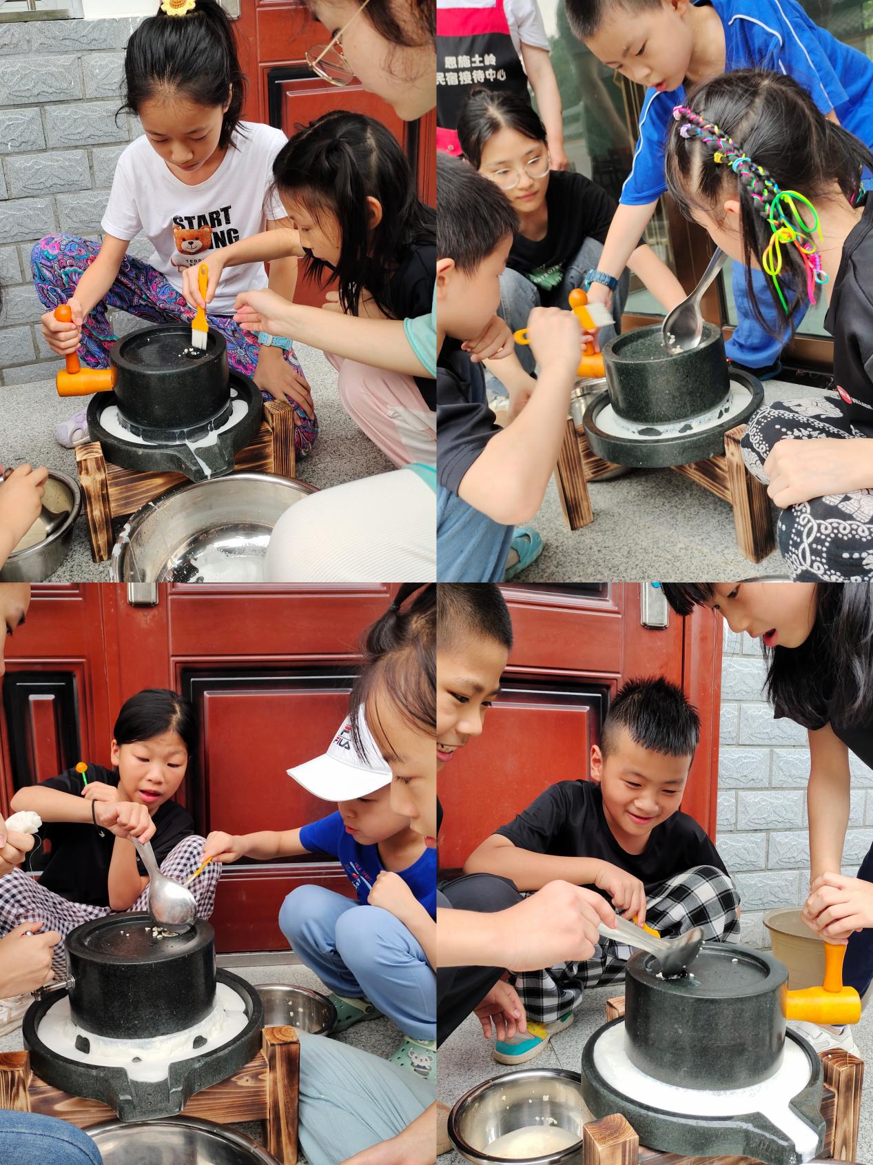 回到客舍后,小朋友们进行推合渣的比拼,合渣是土家族的传统小吃。合渣在开头“推”的阶段比较辛苦,因此人们称制作合渣为推合渣,合渣的营养搭配也很科学,黄豆中的蛋白质与萝卜菜中的维生素、无机盐配在一起,可以达到合理膳食的效果。