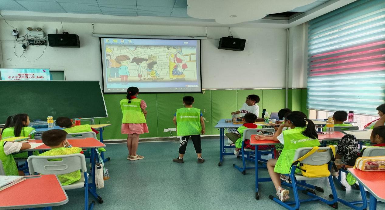 下午是英语情景教学课。老师带着大家一起学习新单词,看英语情景视频,学习里面的对话。同学们积极上台尝试,并用流利的英语完成了情景对话,通过这样的方式能让同学们大胆地开口说英语。