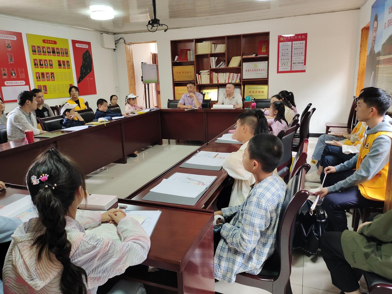 参观完陈列馆后,大家一起到村委会向村支书询问早晨收集起来的问题。随着一个个问题的提出,小朋友们对土岭村的了解也越来越多,越来越深。从乡村人口到土地面积,从百年老屋到旅游民宿,小朋友们的问题涉及到了土岭村的方方面面,里里外外。