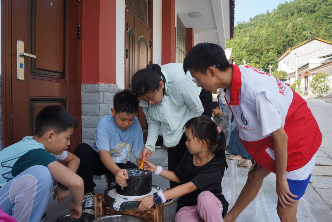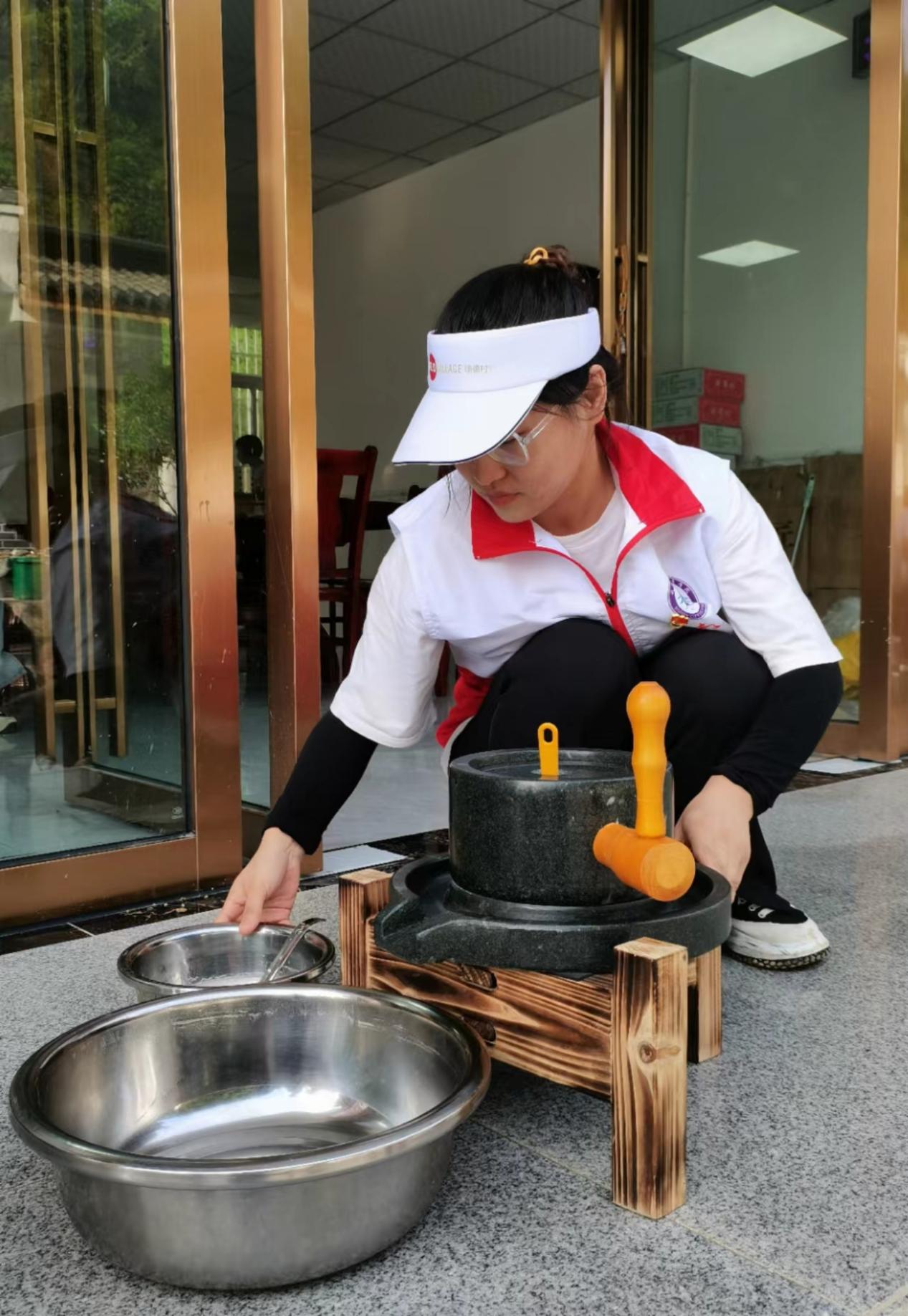 临近傍晚,微风轻拂,斜阳像一件闪着五彩斑斓的纱衣,轻轻地披在了土岭村的山上。下午的课程到了最后一个环节——推合渣的比拼。合渣作为恩施土家族的特色小吃,有着丰富的营养物质。同学们在“推”的过程中,领略着粮食的来之不易,体会着劳作的艰辛。