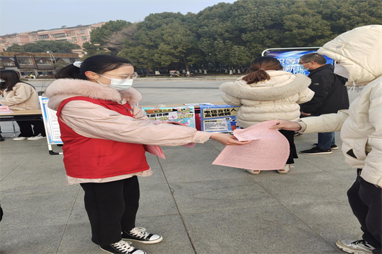 上午八点半,包括陈佳荣同学在内的12名志愿者不惧寒冷,如约而至来到应城人民广场。在社会实践过程中,她认真聆听活动负责人黄会长讲述工作具体要求以及注意事项,积极展开她的工作。工作具体包括:在招聘会现场分发招工简章、引导群众了解岗位信息、维护现场秩序等。在陈佳荣同学等志愿者的协助下,此次招聘会志愿服务工作圆满完成。