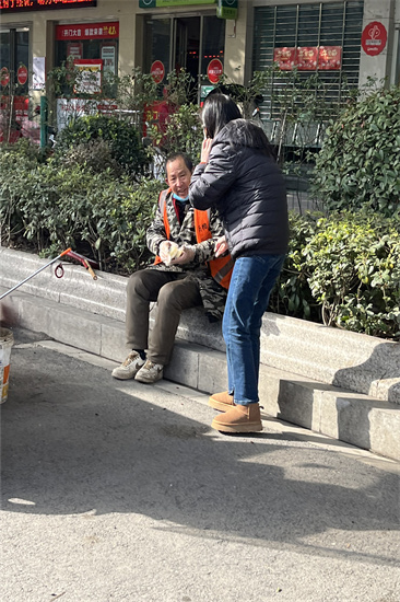同时刘柯君同学在路边看见辛勤工作的环卫工,向他们送上新年祝福。并对他们给大家带来干净城市表达感谢之情。