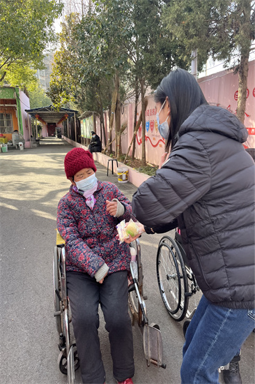 上午九点半,刘柯君同学与另一名志愿服务者不惧严寒如约而至的来到了金福源养老院。因为疫情防控的相关要求,她们认真倾听负责人讲述相关要求以及注意事项,用一些小面包给老人们带来关心和新年祝福。