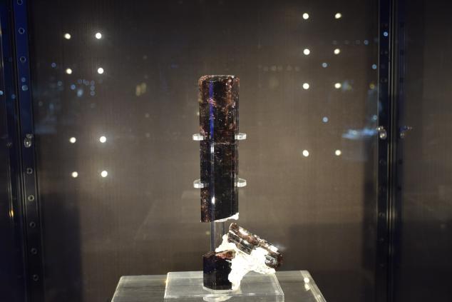 在光华矿物精品展厅,博物馆专业人员为学生们介绍了一批世界级的矿物和化石标本精品,包括造型奇特的火焰状宝石级菱锰矿,世界罕见的海蓝宝、水晶、钠长石、云母、石榴子石组合,珍贵的蓝紫变彩黑欧泊等。