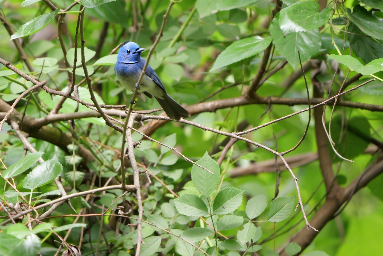 回家后,高老师用电脑检视拍到的蓝色小鸟图片,发现它脑后有一撮黑色的羽毛,这不是白腹蓝姬鹟!于是通过“懂鸟”软件进行识别,并查阅了《中国鸟类野外手册》,这才惊喜地发现,自己拍到的原来是一只珍贵的黑枕王鹟雄鸟!这是一种雀形王鹟科鸟类,在我国主要分布在云南、四川、贵州等南方省份,湖北武汉没有记录。