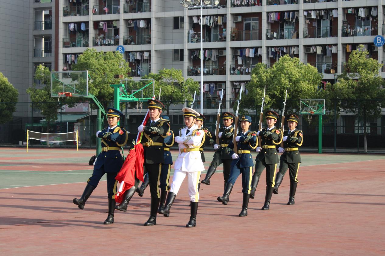 庄严时刻,全体师生肃立。升旗方队迈着整齐划一的步伐,护送国旗前进。旗杆下,随着激昂的《义勇军进行曲》奏响,扬旗手的手臂闪电般一振,国旗随即迎风招展。在师生