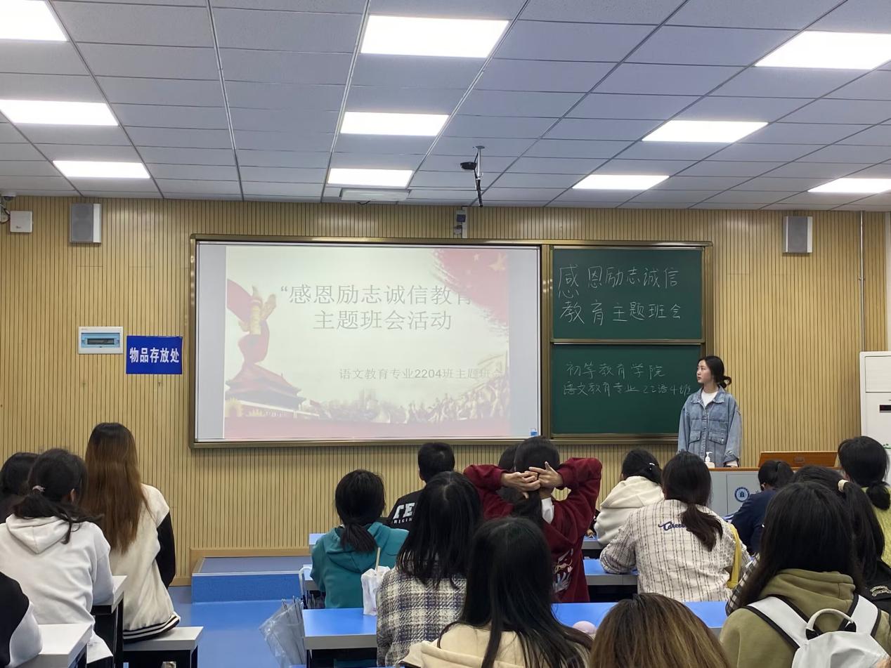 本站讯【通讯员 吴非徽】为培养学生健全的人格,立德立心,全面提升大学生的人文素养,加强校园诚信建设,树立良好校风。4月中旬,初等教育学院组织各班级开展了“感恩励志诚信教育”主题班会活动。