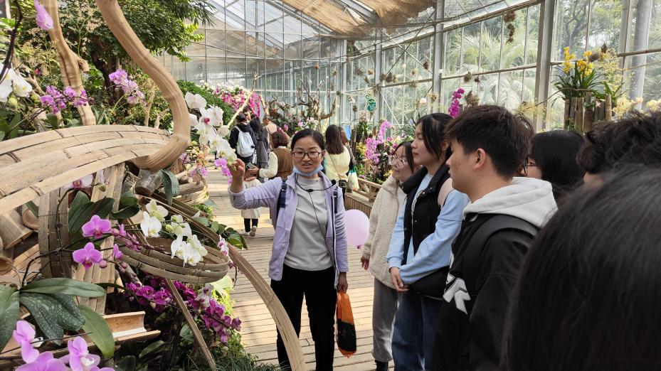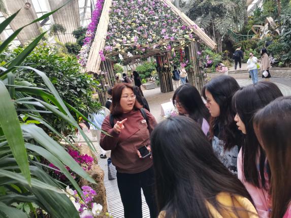 在参加科学节活动之余,开展了研学活动。学生被分成了三个小组,每个小组都由一名带队老师进行指导和讲解,老师告诉同学们,在3月里的武汉植物园芳香四溢、春景怡人。温室中各种名贵的兰花、外面的郁金香、桃花、梨花、樱花、海棠、山茶、玉兰都绚丽盛放……地锦苗、夏天无、婆婆纳等数不尽的小野花生机勃勃,这些花在老师的讲解下让同学们对它们的印象更加深刻,连一株小草都在老师的讲解下都变得如此的有趣和真实。
