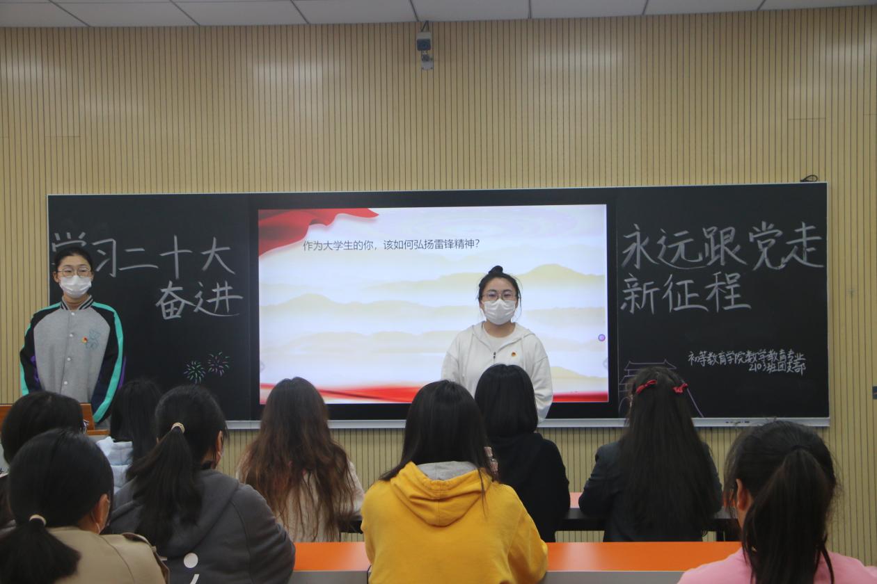 本站讯【通讯员 陆彤彤】为加强同学们的时代责任感,明确自身的社会价值,坚定自身信念,永远跟党走。初等教育学院于3月8日开展了“永远跟党走,奋进新征程”的3月主题团日活动。参加本次活动的有初等教育学院21、22级各团支部团员及班主任老师。