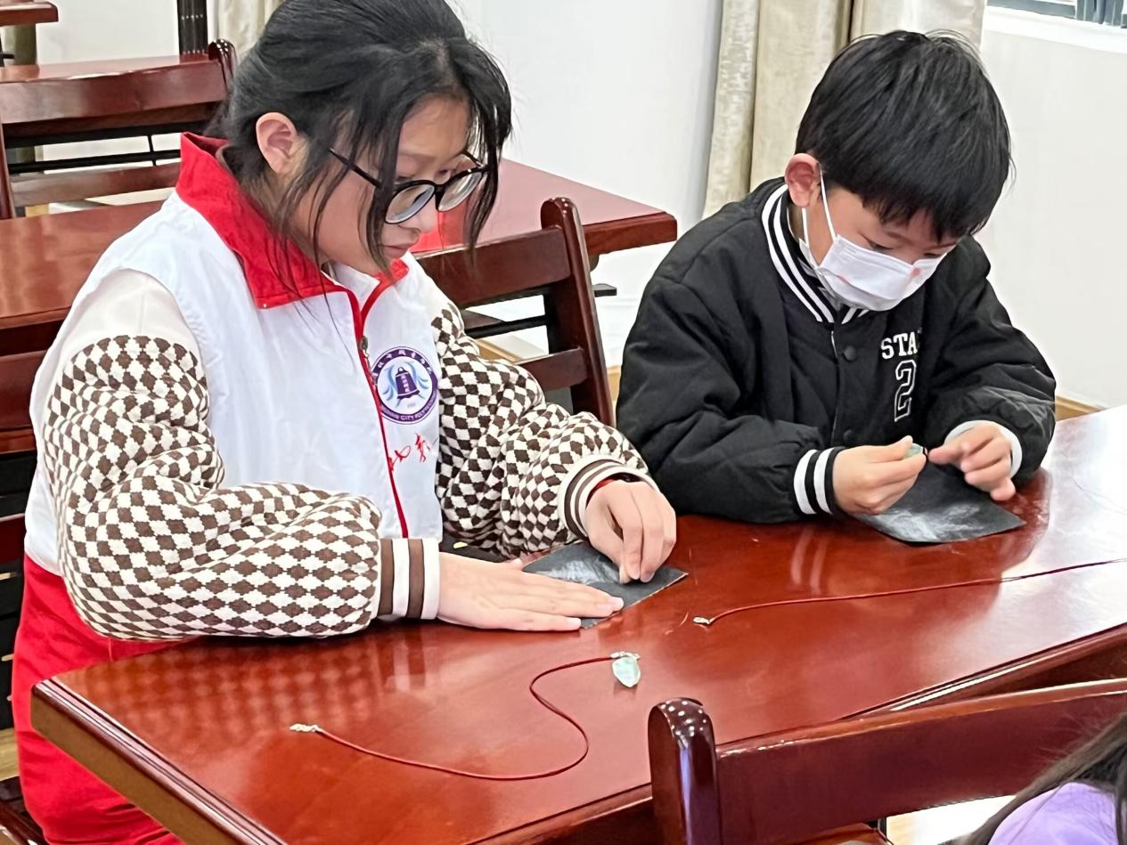 下午是由中国地质大学宝石专业的老师为小同学们科普宝石知识。为我们层层递进阐释了什么是宝石,宝石长什么样,宝石又在哪里等等一系列问题,讲解了几种常见宝石及其简单辨认方法。课堂上对于老师提出关于宝石的问题,同学各抒己见,积极活跃,得到老师的小宝石奖励。在完成课堂知识讲解后,我们将莹石等材料分发给每位小同学进行磨制。让大家在磨制萤石的过程中亲身体验到宝石磨制的快乐和不容易。