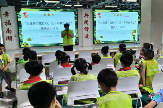 上午小朋友们参加了八一活动——“先锋誓言筑红心,八一军梦众手绘”暨庆八一活动。八一建军节是中国人民解放军建军纪念日,定为每年的八月一日,由中国人民革命军事委员会设立,为纪念中国工农红军成立的节日,激发学生们的爱国情怀。