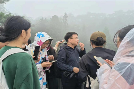 紧接着到达了锦绣谷,同学们不畏锦绣谷的险峻,走过无数的阶梯,同学们依旧孜孜不倦的学习,方赛军老师为大家介绍了它的形成原因和地势地貌,辨别褶皱类型及断层性质。“天生一个仙人洞,无限风光在险峰”这是毛泽东主席所题的一首诗。同学们在仙人洞稍做休息,方老师继续为同学们讲解了仙人洞的成因和岩性。仙人洞的岩性为砂岩,有节理发育,易被侵蚀而形成。