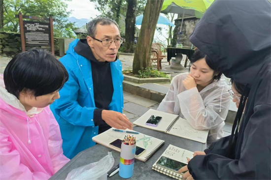 在文殊台结束用餐后,在边庆老师的带领下同学在这里绘画自然笔记,边老师向同学们讲解了自然笔记的绘画要点。杨春松老师和柯文婷老师指导同学们如何正确的画植物。经老师们的指导和讲解,复杂的植物结构画起来好像也没有那么难了。