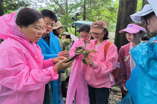本站讯【通讯员 张倩】8月30日,今天是庐山野外实习的第四天,上午八点半同学们集合完毕后前往如琴湖,在这里,杨春松老师和柯文婷老师带领着同学们认识了路边的植物,给大家讲解了它们的名称、结构,以及形态特点。比如,大桥悬铃木属于悬铃木科,其叶通常具有多变的形状,叶片有锯齿。