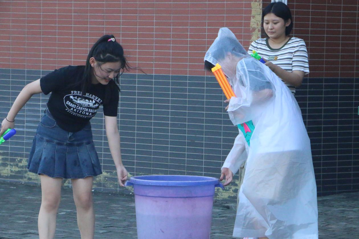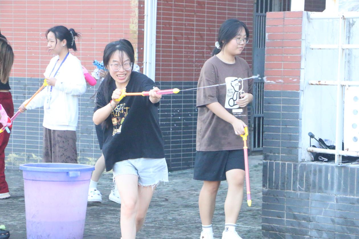活动中,同学们自由组队,通过各种方式互相泼水,场面异常热烈。有些同学甚至全身湿透,但他们仍然乐在其中,全身心的投入到了这场泼水派对中。