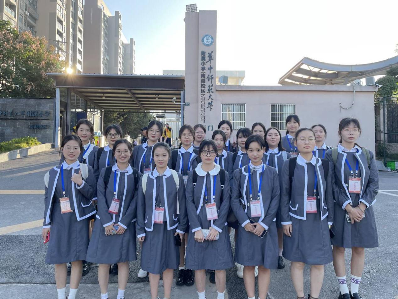 见习生分成第一小组和第二小组,分别前往珞狮路小学和华中师范大学附属小学。第一小组前往华中师范大学附属小学,迎着清晨的阳光,上午7:50准时抵达校园门口集合。