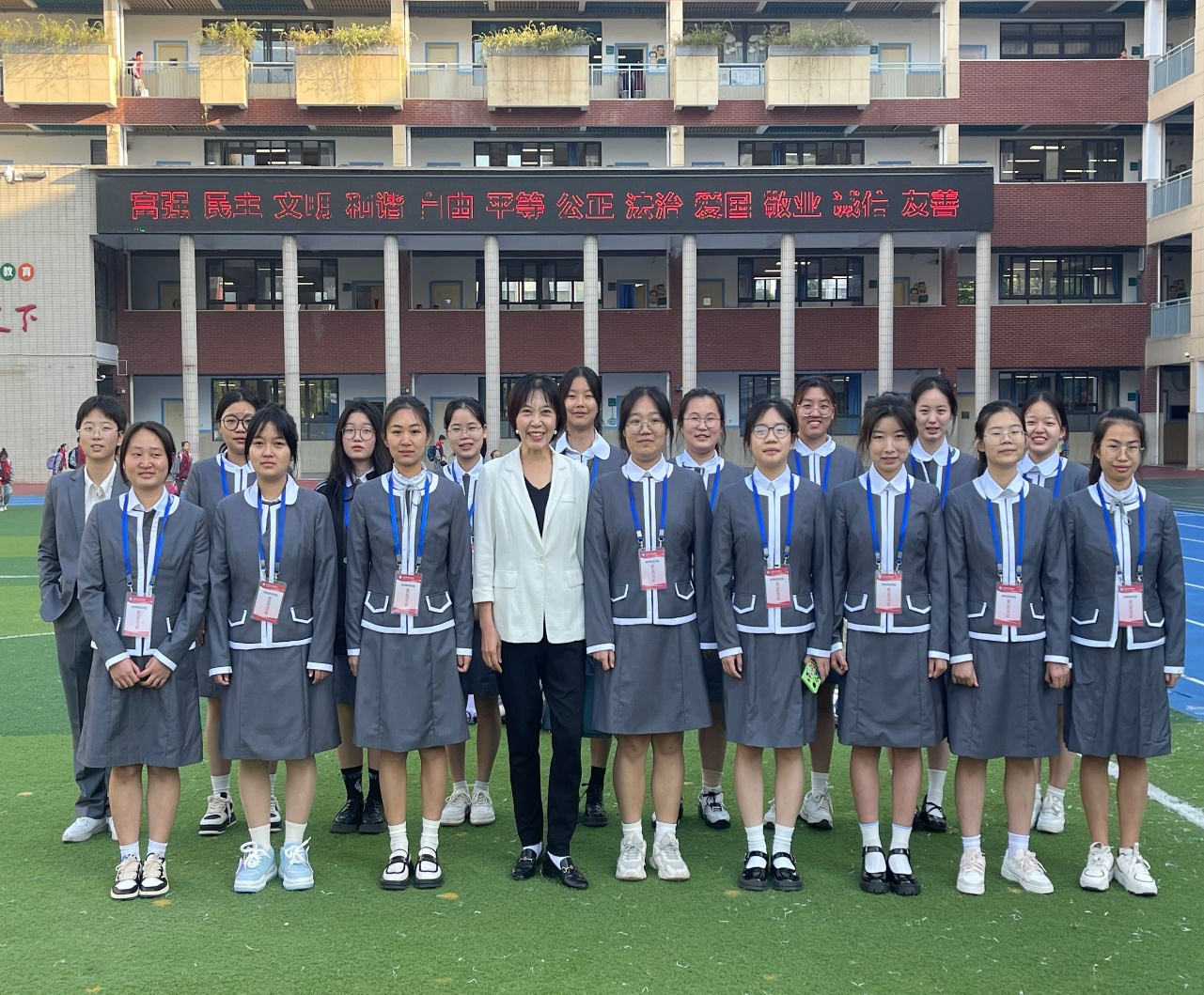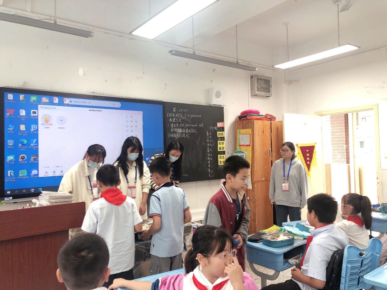见习一周的过程中,我们收获了很多,学习到如何与小学生进行沟通,我们在不同的课堂中学习到不同的授课方法,也学习到教师授课中的教学过程。最后,我们与学生一起拍了合照,为我们这次见习画上圆满的句号!