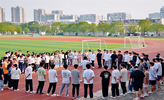 热身运动结束后,游戏正式开始。在喻凯老师的带领下学员们围成了一个圈,当他发出“举起左手”的指令时,各位学员就要举起右手。一个小小的锻炼反应能力的游戏,瞬间让操场上充满欢声笑语,调动了同学们的积极性,集中了注意力,放松了身心。