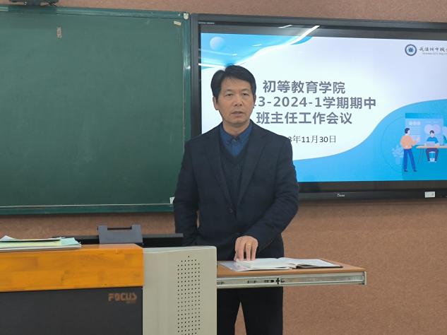 本站讯【通讯员 涂梦香】为了更好地做好学生教育和班级管理工作。初等教育学院于11月30日在A301教室召开了2023—2024学年第一学期期中班主任工作会议。参加本次会议的有初等教育学院党总支书记曾锦全老师,学工办副主任王斌老师,全体班主任、辅导员老师。本次会议由学工办副主任王斌老师主持。