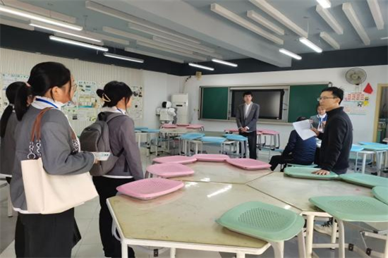 实习中,学校老师们给予了我们足够多的支持与帮助。带队老师郭胜娟老师多次来到小学,听我们讲课,和我们交流,关注我们的情况。12月1日,贺汪波院长和祁昕老师来到金都校区,与金都校区的校领导和实习生开展座谈,指导实习生珍惜实习机会,主动求教。