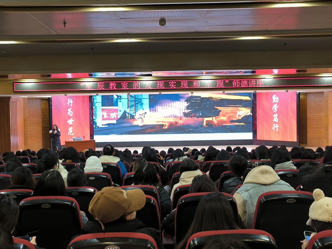 本站讯【通讯员 熊蕾 余红娟 杜学佼】为进一步促进小学教育专业学生教学水平和教育能力的提升,树立积极的职业价值导向。武汉城市职业学院初等教育学院于2023年12月20日开展了“星辰教室的发现、实现和呈现”的师德讲座,主讲人是武汉市青山区钢城第十七小学的余婧老师。初等教育学院院长贺汪波、党总支书记曾锦全,毕业班班主任和辅导员等老师以及全体毕业生参加了此次讲座。