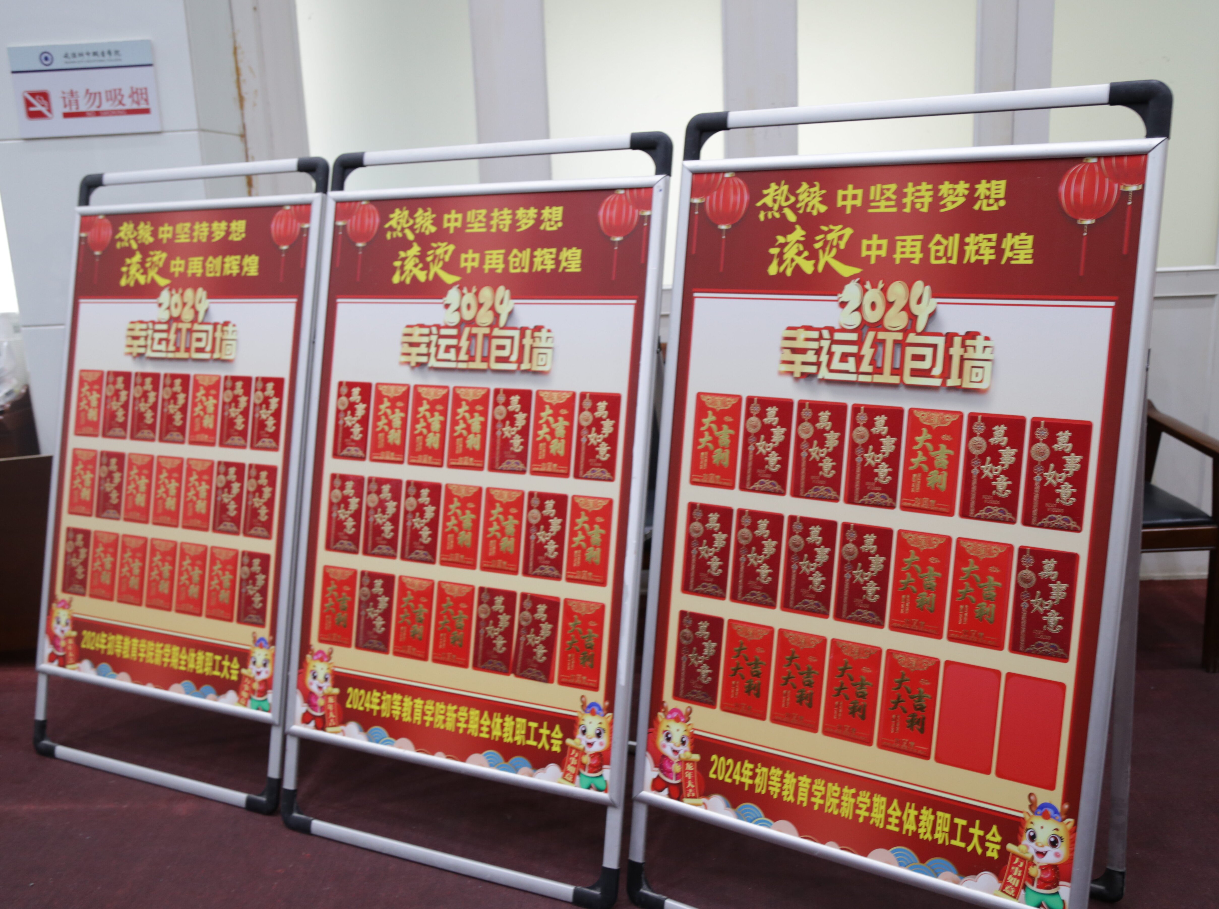 大会结束后,学院还为每位教职工准备了热气腾腾的汤圆和红包,寓意着团圆和吉祥。大家在欢声笑语中抽取红包,共同庆祝新学期的到来。在一片欢乐的气氛中,初等教育学院新学期教职工大会圆满落幕。
