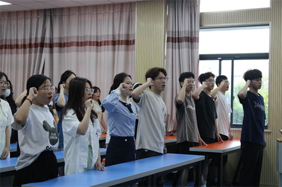 第一项,由各班团支书介绍各班团费缴纳情况,并带领团员重温入团誓词。同学们举起右手,庄严宣誓,那一句句铿锵有力的誓言,仿佛穿越时空,与百年前五四青年的热血激情相呼应,激荡在每个人的心田。