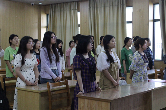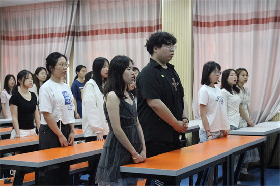 第三项,齐唱团歌。在激情澎湃的团歌声中,同学们展现出了新时代青年的朝气与团队凝聚力。团歌唤起了同学们为团组织奋斗的信念,激励着他们在实现中华民族伟大复兴的道路上砥砺前行。