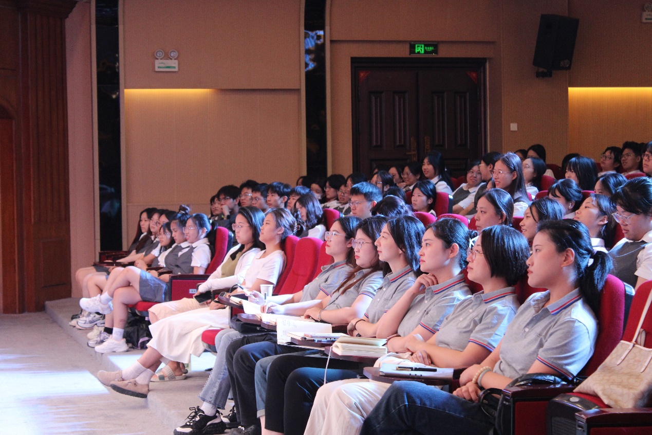 报告会的第三部分,彭玉生校长分享了自己儿时的回忆和成长历程每一个细节都充满了对生活的热爱和对梦想的追求。他坦言,正是这些童年的经历,塑造了他坚韧不拔的性格,也让他更加坚定了投身乡村教育的决心。彭校长还提到,小时候抓鱼的乐趣让他深刻体会到“就地取材,丰衣足食”的道理,这也成为了他教育理念的一部分——鼓励学生们珍惜资源,勇于创新,用知识改变命运。他说:“乡村条件有限,我想,思路决定出路,教育就要善于更新理念、搭建平台、迎难而上。”于是他毅然决然地选择了这条充满挑战的道路。他用自己的故事激励着在场的每一位同学,希望他们能够怀揣梦想,勇往直前,让乡村教育的种子在更广阔的土地上生根发芽。