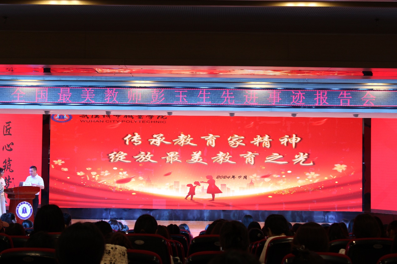 本站讯【通讯员 杜学佼】国将兴,必贵师而重傅。为传承教育家精神,绽放最美教育之光,激励更多教育工作者投身乡村教育事业,传递教育正能量,9月21日,全国最美教师彭玉生先进事迹报告会在武汉城市职业学院北校区成功召开。参加本次报告会的有初等教育学院、学前教育学院的师生们。