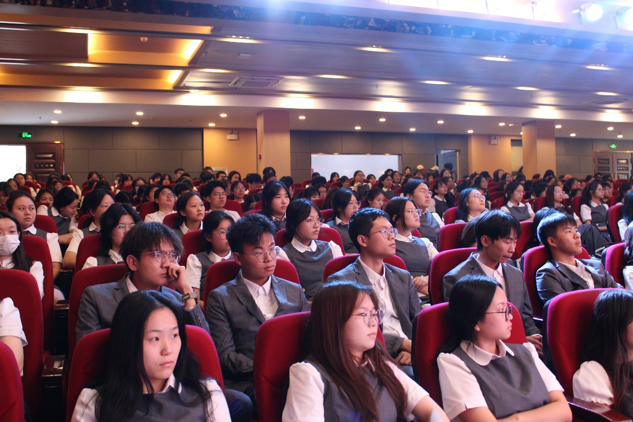 报告会的第三部分,彭玉生校长分享了自己儿时的回忆和成长历程,每一个细节都充满了对生活的热爱和对梦想的追求。他坦言,正是这些童年的经历,塑造了他坚韧不拔的性格,也让他更加坚定了投身乡村教育的决心。彭校长还提到,小时候抓鱼的乐趣让他深刻体会到“就地取材,丰衣足食”的道理,这也成为了他教育理念的一部分——鼓励学生们珍惜资源,勇于创新,用知识改变命运。他说:“乡村条件有限,我想,思路决定出路,教育就要善于更新理念、搭建平台、迎难而上。”于是他毅然决然地选择了这条充满挑战的道路。他用自己的故事激励着在场的每一位同学,希望他们能够怀揣梦想,勇往直前,让乡村教育的种子在更广阔的土地上生根发芽。