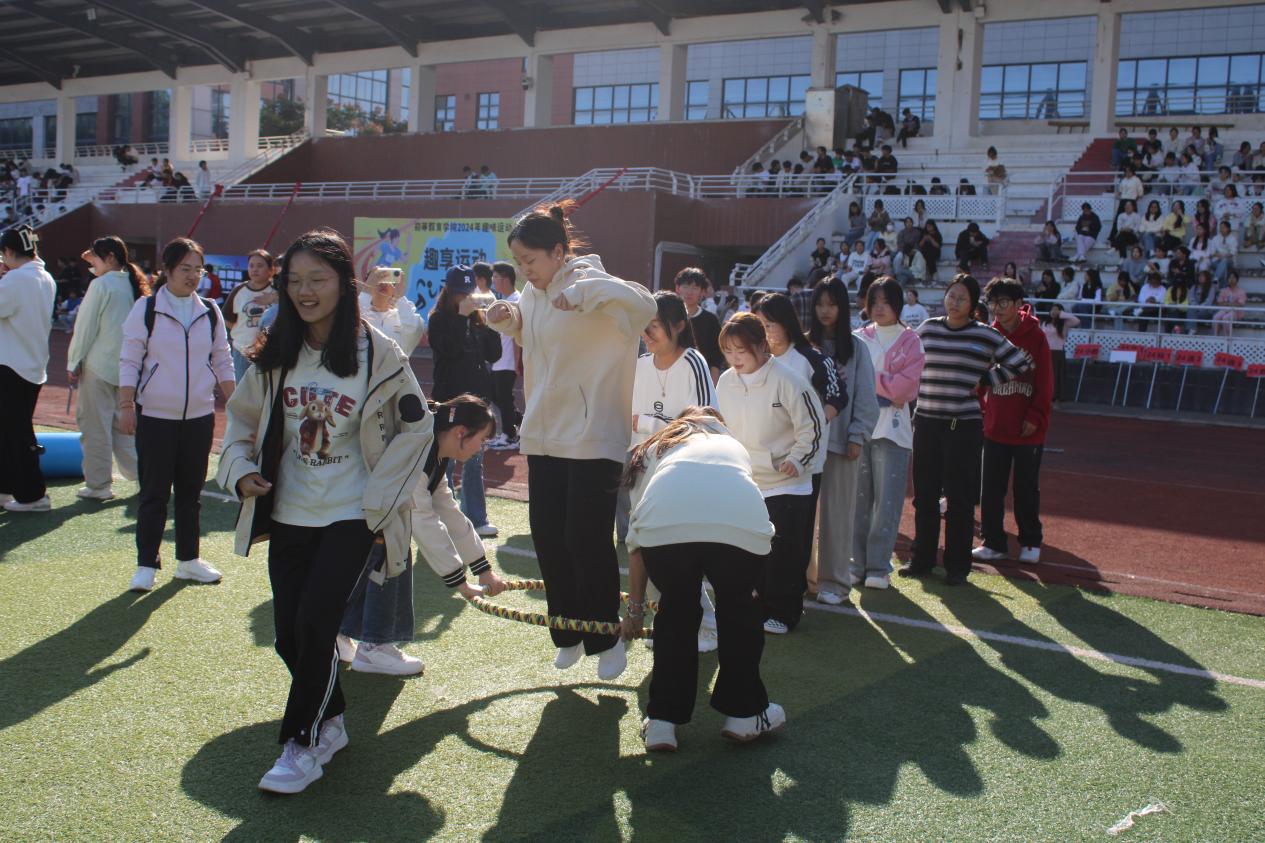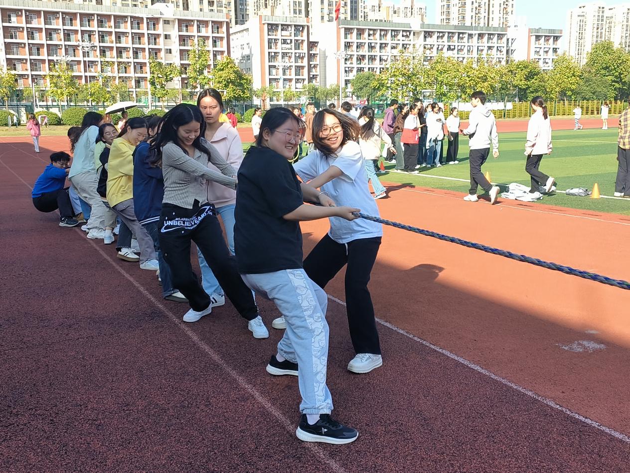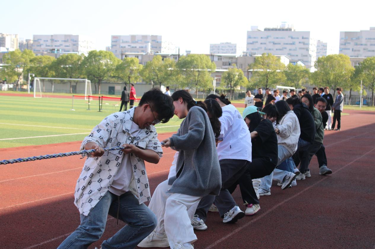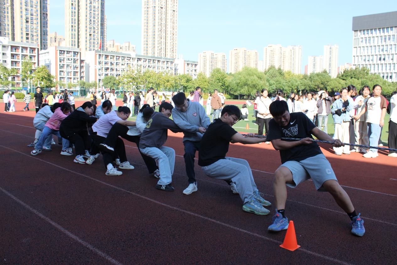 拔河是一项锻炼全身肌肉力量,增强团队协作能力和意志力的运动。哨声一响,参赛选手都使出全身力量想赢得胜利。而在旁边的同学们也扯着嗓子为自己的队伍加油。随着“一二一二”和“加油”的声音响起,现场的气氛瞬间被点燃。