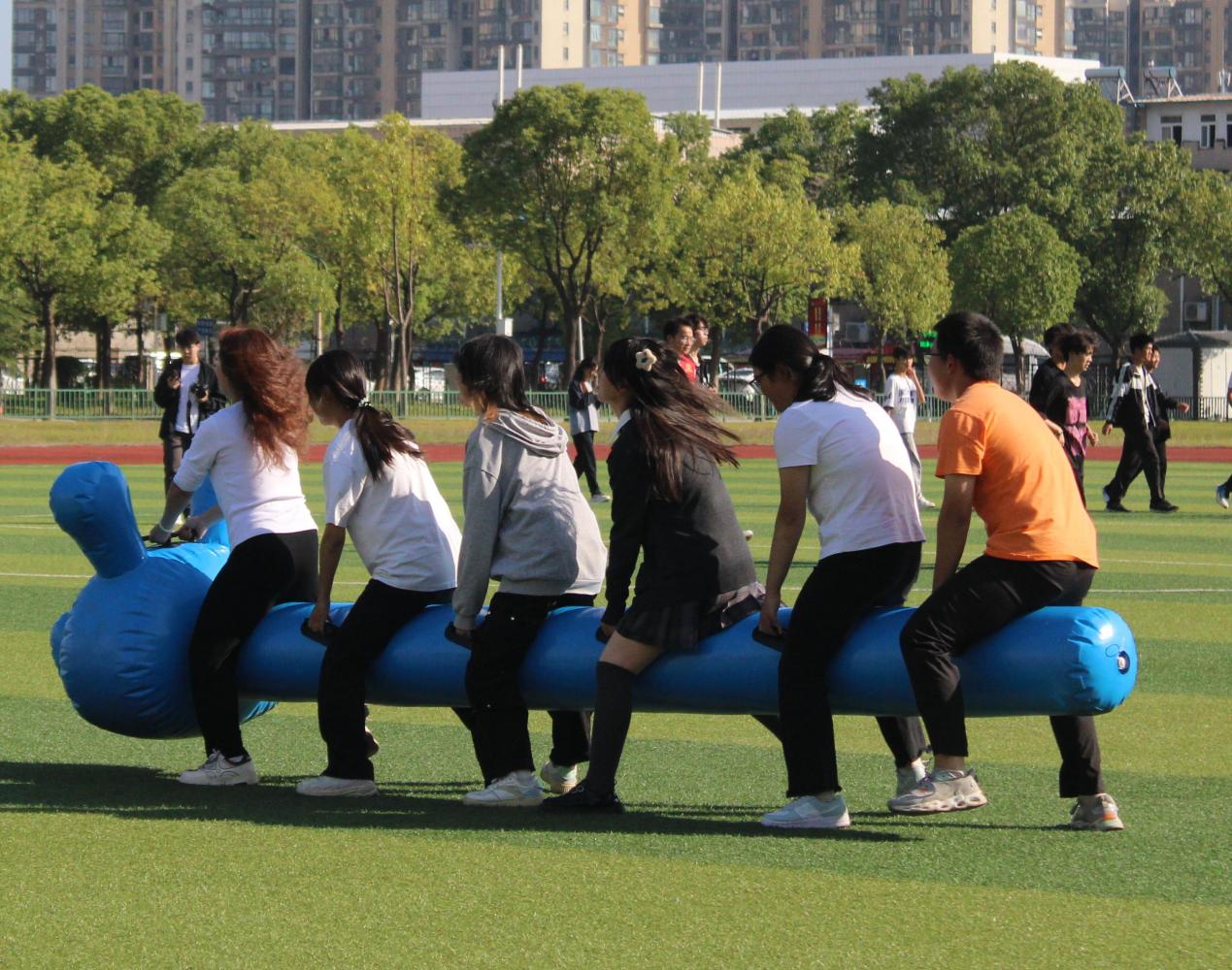 旱地龙舟需要参赛人员们一起坐在充气道具上一同向前,这不仅仅考验了大家的灵活性,更考验大家的配合度与默契。他们骑着“马首蛇身,鹿角驼头”的龙,都忍不住激情高涨,商议着比赛技巧,渴望成为最后的赢家。计时开始,大家同时迈出步伐,磅礴的气势压山倒海般袭来,众人忍不住为赛场上的他们欢呼。