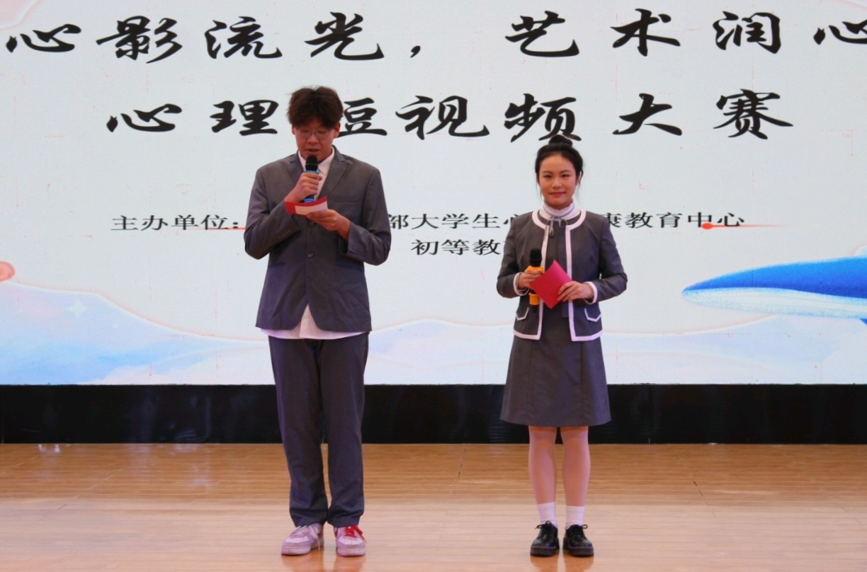 2024年11月21日下午,心理短视频大赛展映与颁奖典礼于北校区报告厅隆重举行。初等教育学院党总支书记潘中锋,学生工作部副部长汪刚,大学生心理健康教育中心副主任张爱华,初等教育学院学工办副主任王斌,大学生心理健康教育中心专职教师李霞、兼职咨询师邱细华和黄倩以及部分辅导员老师莅临现场。