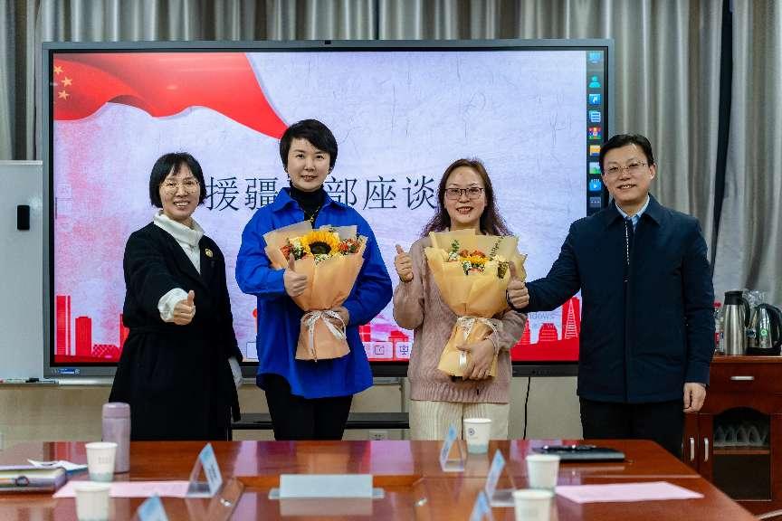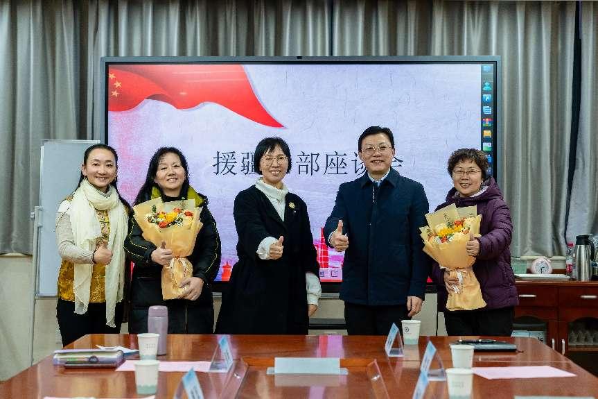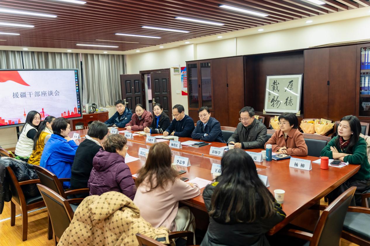 座谈会由武汉城市职业学院副校长杨爱民主持。出席会议的有博尔塔拉职业技术学院党委委员、副院长吴江慧,以及来自武汉城市职业学院的多位领导与第九批、第八批及新援疆干部代表。