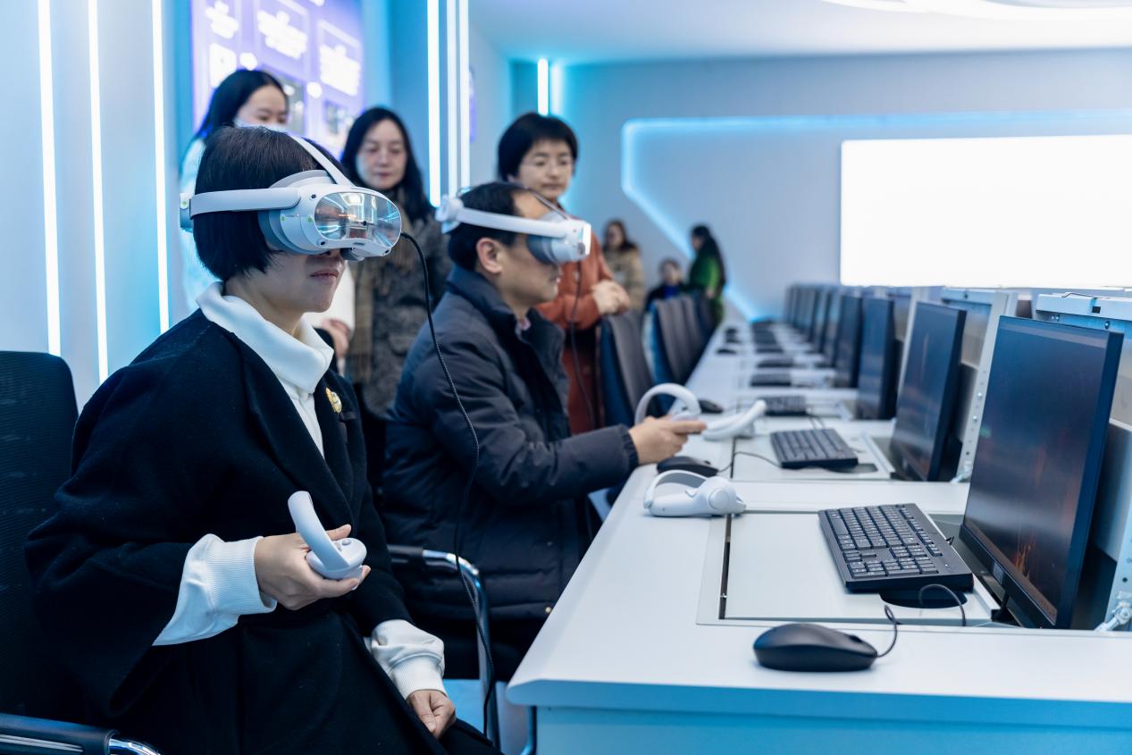 活动伊始,参会人员首先在杨爱民副校长的带领下,进行了实地调研。大家参观了初等教育学院的国学馆和科学实训室,以及虚拟仿真实训室。这些现代化的教学设施和资源,展现了武汉城市职业学院在教育教学方面的先进理念与扎实成果,也为援疆工作提供了新的思路和启示。