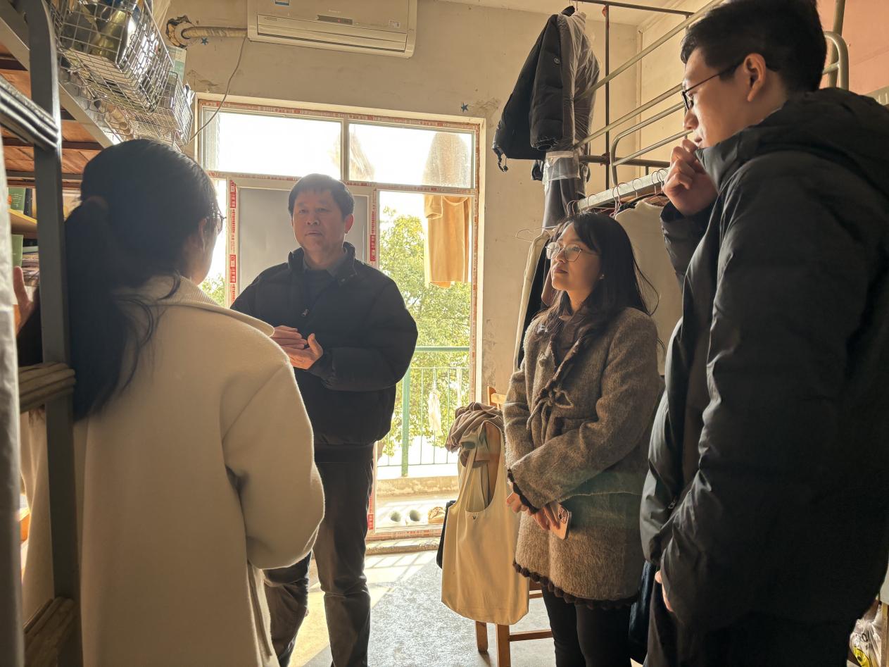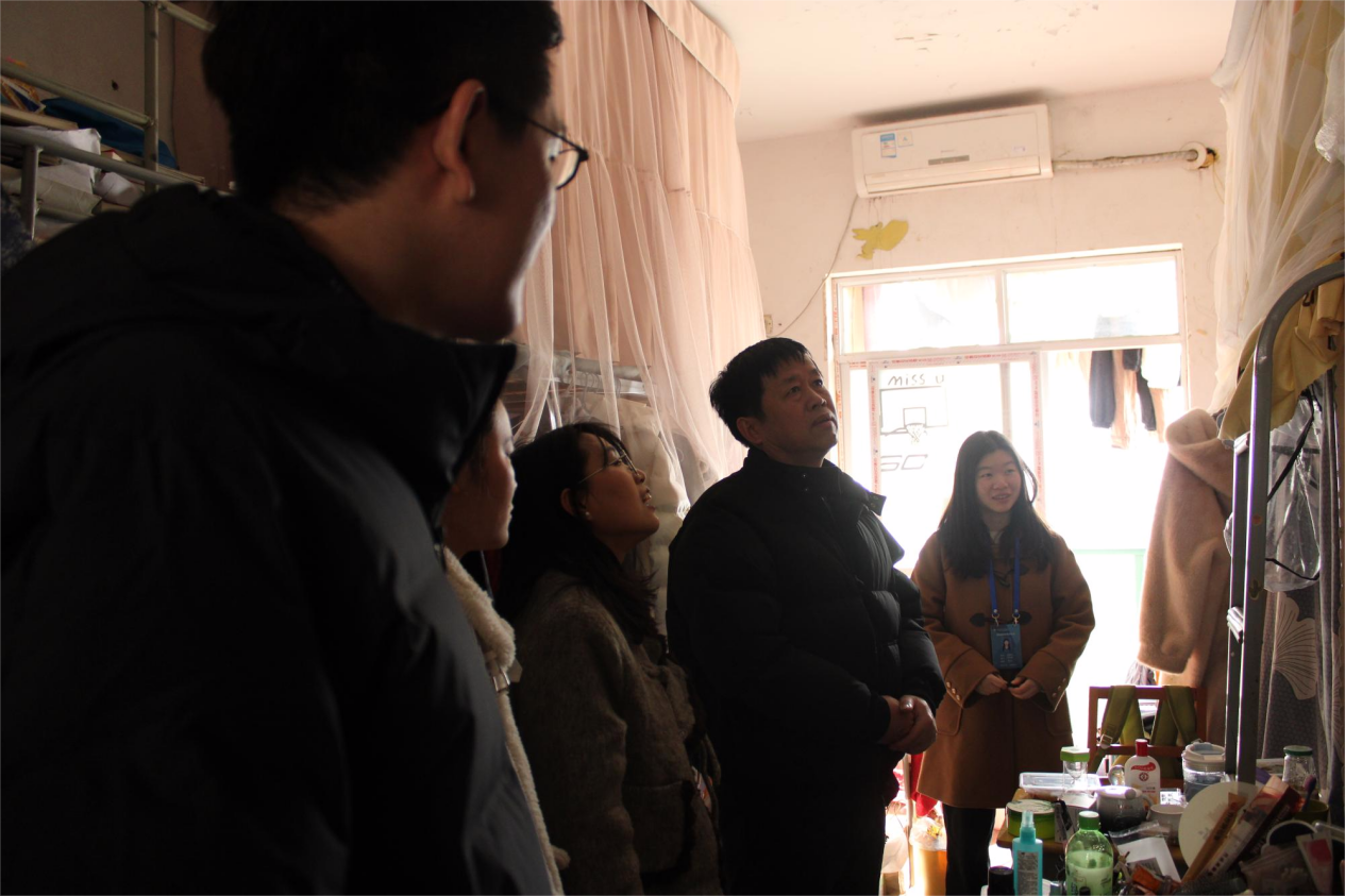 本站讯[通讯员 潘中锋]为了更好的了解学生们的寝室生活,对宿舍安全隐患问题进行排查,做好放假前的准备工作,12月31日下午,党总支书记潘中锋老师与辅导员老师们一起走访了学生宿舍。