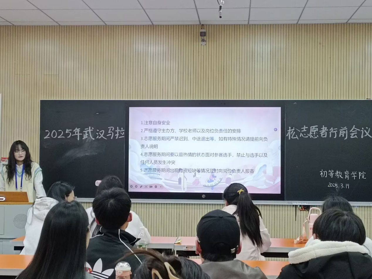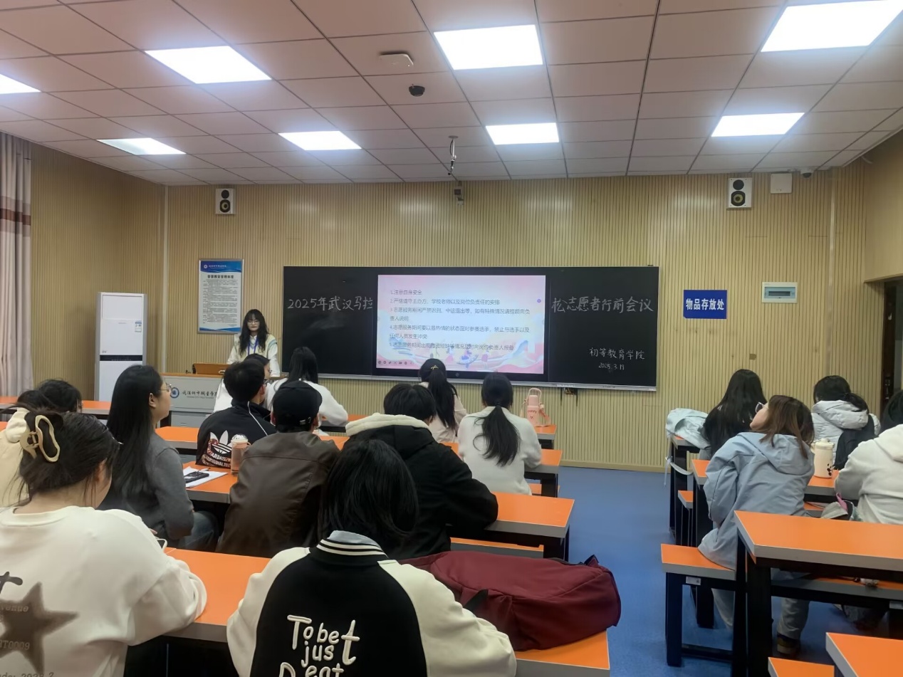 本站讯【通讯员 杜学佼】小园新种红樱树,闲绕花枝便当游。樱花烂漫之际,武城初教学子如珞珈山枝头的粉白樱花,用集体的绽放重构武汉色彩,用志愿微光汇聚成照亮社会的火炬。为顺利开展武汉马拉松志愿服务,践行志愿服务精神,3月19日下午我院开展武汉马拉松志愿者行前会。
