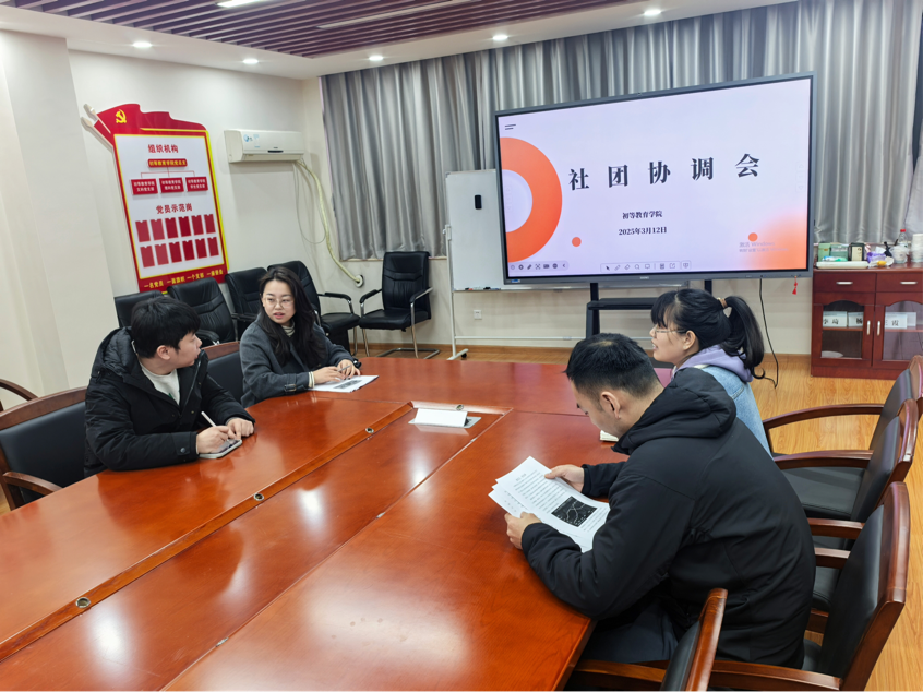 本站讯【通讯员 杜学佼】为进一步推动学院社团活动的创新发展,促进社团活动与学院特色活动及团委工作的有机结合 2025年3月12日,初等教育学院在行政楼501会议室召开了社团协调会,会议由团委负责人刘晓琴老师主持,社团指导老师参会。