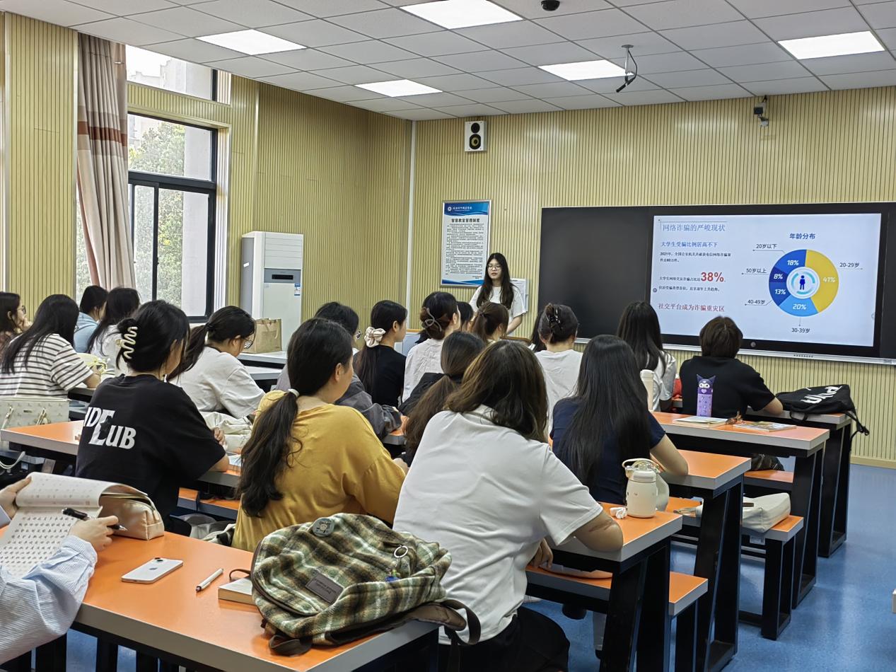 座谈会上,倪远老师以数据敲响反诈警钟:本学期开学仅三周时间在校学生被骗金额3万元,公安部门的数据显示所大学生网络交友诈骗案件在所有诈骗案件中占高达38%。倪老师剖析常见诈骗套路,如“杀猪盘”诱导投资虚假购物游戏账号交易借消费、兼职心理诈骗。分享反诈方法时,倪老师给出实用技巧,包括核验身份、拆解话术、管控资金,不向陌生平台转账,保护个人信息,拨打96110预警,同学间相互交流甄别信息 。