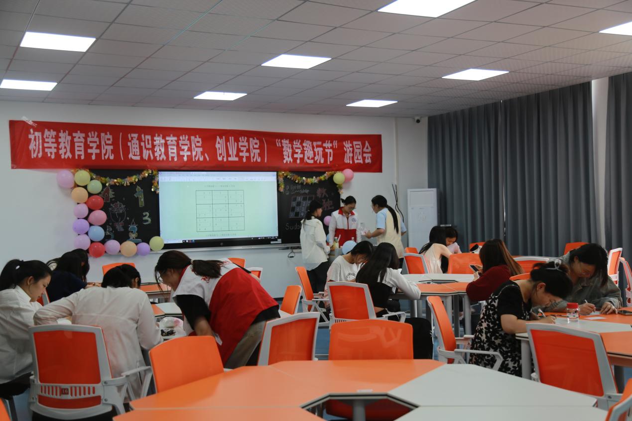 本站讯【通讯员 王思梦 杜学佼】为丰富校园文化内涵,激发学生数学探索热情,培育创新实践素养,初等教育学院(通识教育学院、创业学院)数学教研室于4月17日精心策划并举办了首届“数学趣玩节”游园会。活动以“寓教于乐、启智增慧”为宗旨,通过沉浸式数学游戏体验,搭建师生互动交流平台,为校园注入浓厚的学术活力。学院党总支书记潘中锋、学工办副主任王斌、数学教研室主任占晓军、张韧、范雨薇、王小平等教师代表,以及各班级辅导员、班主任、各专业学生一同参与,共同见证了这场数学盛宴。