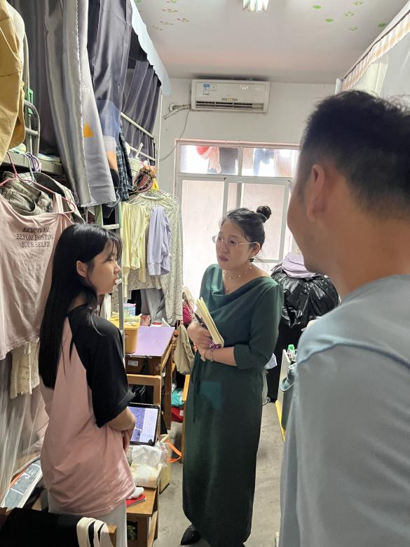 本次检查坚持严字当头、细处着手。李春梅副书记带队深入学生宿舍。检查重点聚焦宿舍用电防火安全:仔细排查大功率电器、易燃物品堆放等隐患;关注宿舍楼栋安全:排查宿舍过道暴雨天气的积水排水情况;同时对宿舍卫生、夏季传染病防控情况也进行细致督查。