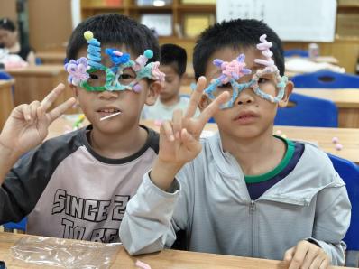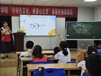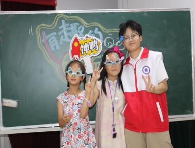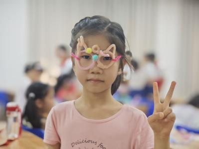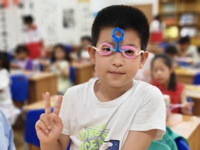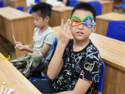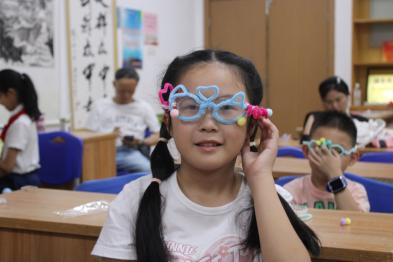 上午,课程刚开始,实践队员放出眼镜的图片提问:“大家看看,眼镜是由哪些部分组成的呀?”“镜框!”“镜片!”“还有鼻托!”小朋友们积极的回答。互动结束后,实践队员为小朋友们分发扭扭棒材料包。拿到材料后,小朋友们迫不及待挑选出自己喜欢的颜色。在实践队员的逐步引导下,小朋友们充分发挥想象力与动手能力,将扭扭棒巧妙弯折,很快,各式各样的创意眼镜就完成了。有的像彩虹一样绚丽,有的装饰着可爱的小兔子耳朵,还有的加上了炫酷的装饰。当小朋友们戴上亲手制作的眼镜时,脸上洋溢着自豪与喜悦,纷纷摆出各种姿势,邀请实践队员拍照留念。此次扭扭棒手工课,不仅锻炼了小朋友们的动手能力与创造力,还让他们在实践中收获快乐、增长知识。