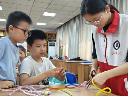 为深入践行青年社会责任,助力社区儿童成长,“传特色文化,承童心之梦”暑期社会实践队于2025年7月3日前往宝安社区,为社区的小朋友们带去生动有趣的特色课程。实践队员们以扭扭棒、拓扑学为载体,开设趣味课程,带领小朋友们感受手工的魅力,探索数学的奥秘。